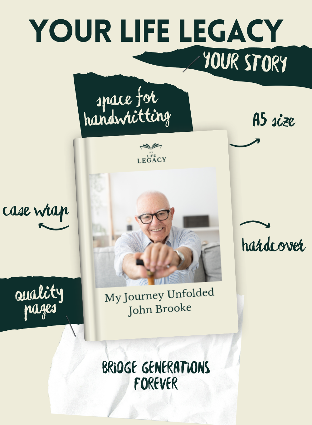Each week, a carefully crafted question will be sent to evoke memories, values, and meaningful moments. In response, the writer will create a story of approximately 500 words, perhaps accompanied by a photo, gradually building the narrative of their legacy. To help avoid feeling overwhelmed, they will also receive weekly writing tips for each prompt and further guidance through our newsletter.